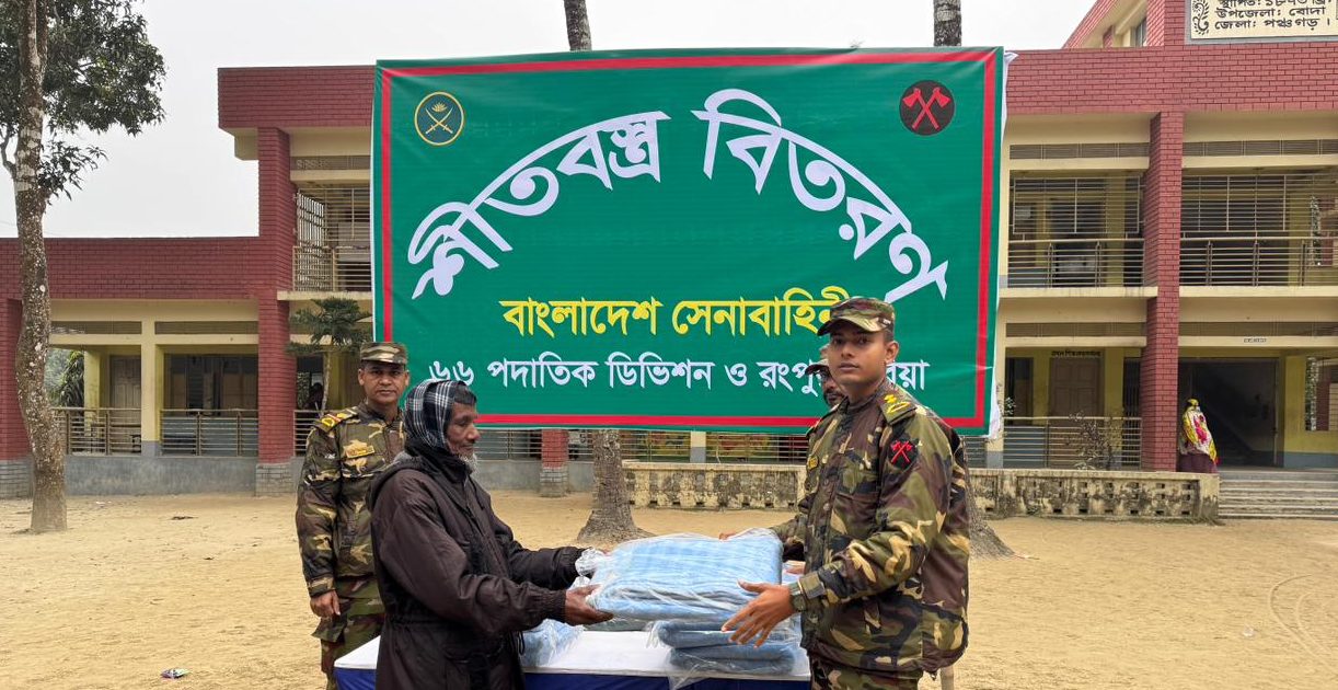সেনাবাহিনীর মানবিক কার্যক্রমের অংশ হিসেবে পঞ্চগড়ের বোদা উপজেলায় অসচ্ছল ও অসহায় মানুষের মাঝে শীতবস্ত্র বিতরণ করা হয়েছে।